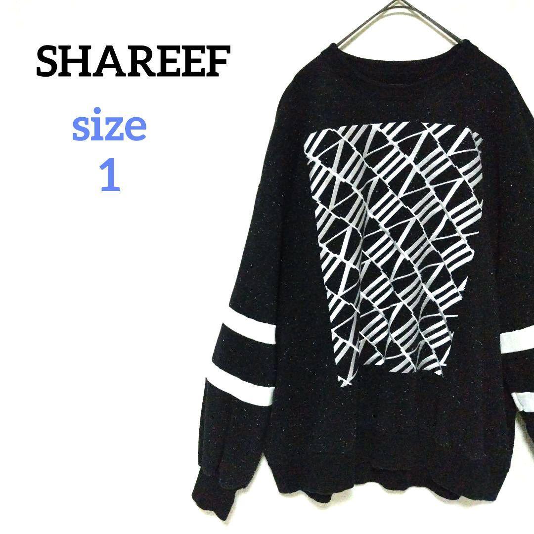 - SHAREEF シャリーフ 幾何学刺繍トレーナー ローマ数字 ギリシャ エンブロイダリー 黒 ブラック スウェット 二本線 ロングスリーブ 長袖