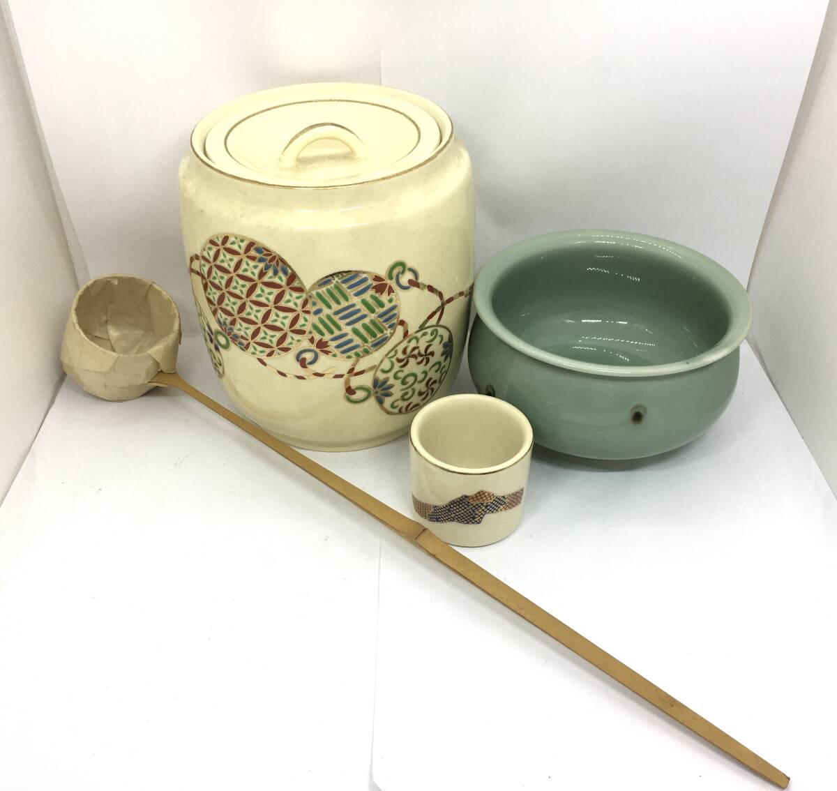 - 茶道具 水指 建水 蓋置 柄杓 四点 セット