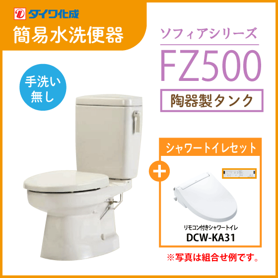 > 簡易水洗便器 簡易水洗トイレ 「ソフィアシリーズ」 FZ500-N00(手洗なし)・シャワートイレセット(壁リモコンタイプ) ダイワ化成