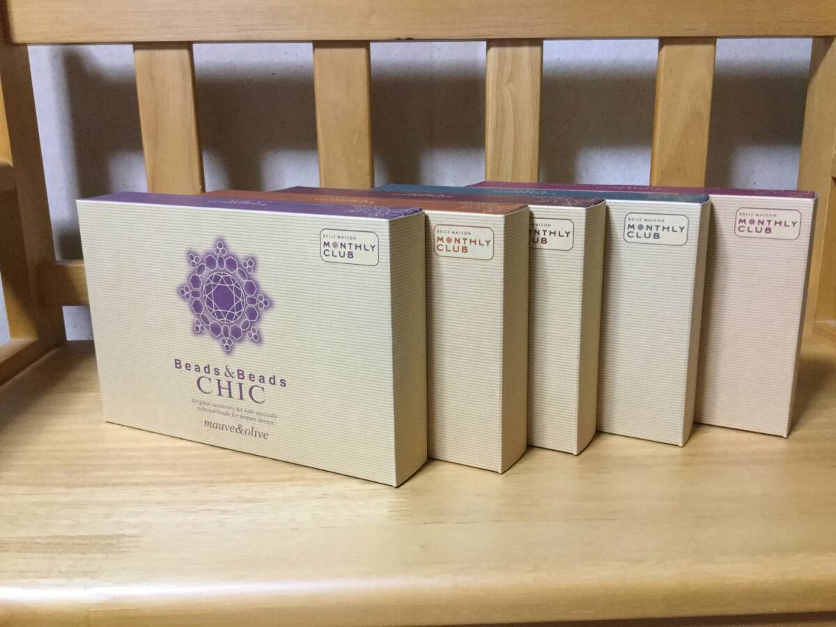 - 未使用★ベルメゾン マンスリークラブのビーズアクセサリー作成キット「ビーズ&ビーズ シック」5箱セット★3通りのレシピ・千趣会