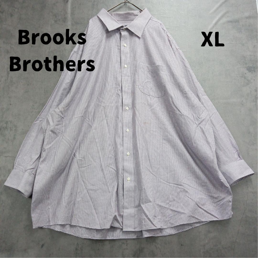 - ブルックスブラザーズ 長袖シャツ チェック柄 パープル ビッグサイズ【6131】