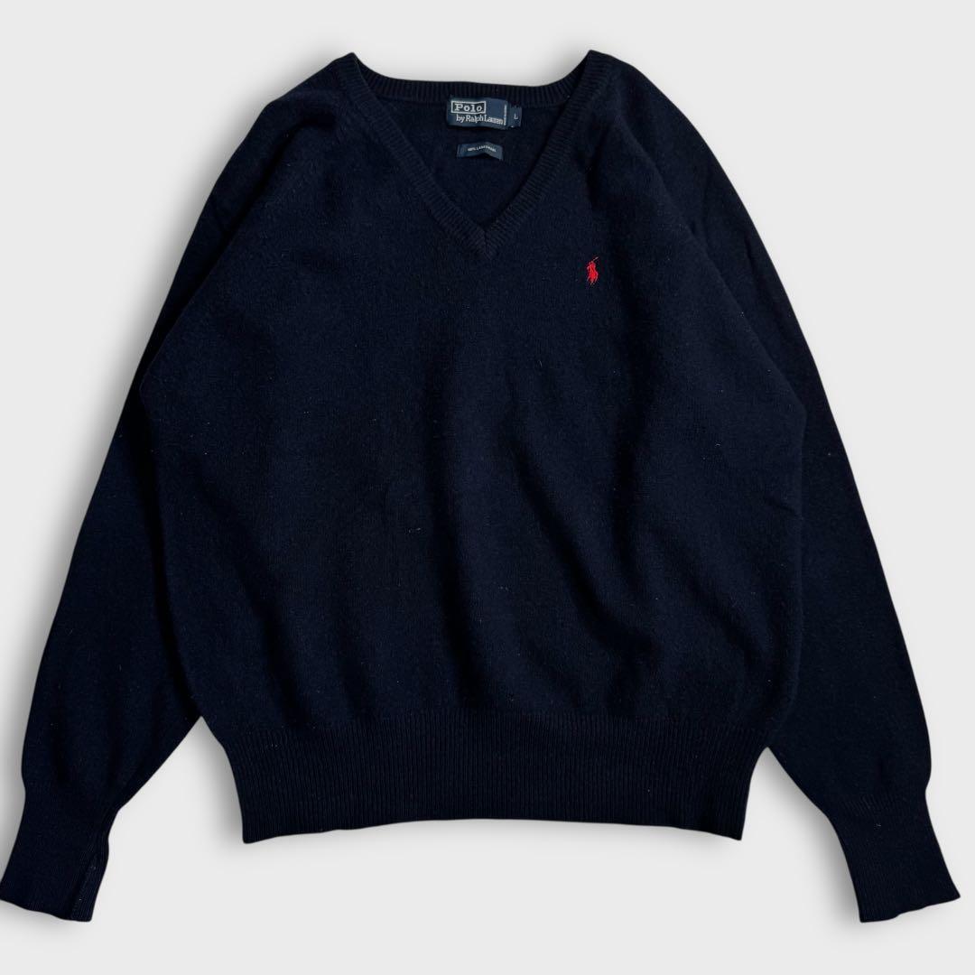 - 希少 90's L ポロバイラルフローレン ウール ニット セーター ネイビー 刺繍 POLO BY RALPH LAUREN メンズ ロゴ 古着 ヴィンテージ