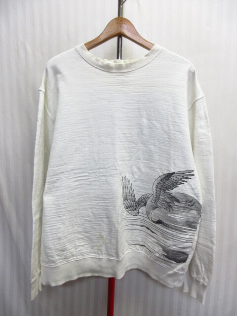 - 絡繰魂 和柄刺繍スウェット メンズXL LL 白系 トレーナー 和柄デザイン 長袖カットソー ジャージトップ 鶴 富士山 10071