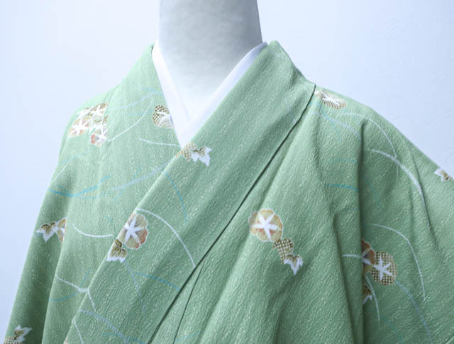 - 《京都一輝堂》【着物】 小紋 縦縞に朝顔文様 身丈約163.5cm 裄丈約65.5cm 24Z-1160