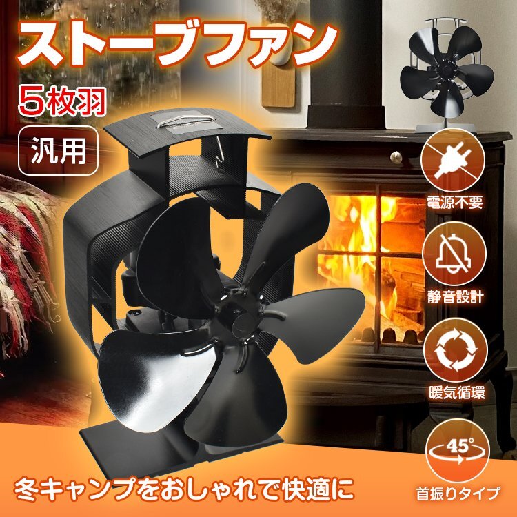 - 送料無料 ストーブファン 首振り 5枚 エコファン 電源不要 静音 省エネ 室内 空気循環 温風 暖炉 暖房 防寒 火力 熱炉ファン 焚火 od580