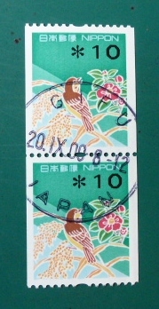 > 誤発売 10円コイル 縦ペア 青アゴ付 GIFU 20.IX.00 8-12 JAPAN 使用済 美品 A-96-4s