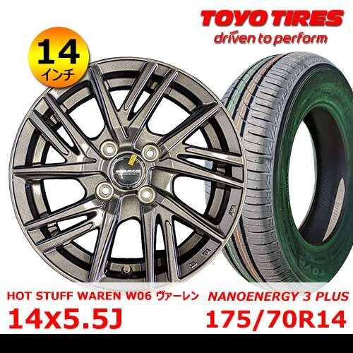 > 送料無料 新品 タイヤ&ホイール 14【HOT STUFF WAREN W06 ヴァーレン 14x5.5J +45 100x4】【トーヨーNANOENERGY 3 PLUS 175/70R14】WHOT-20