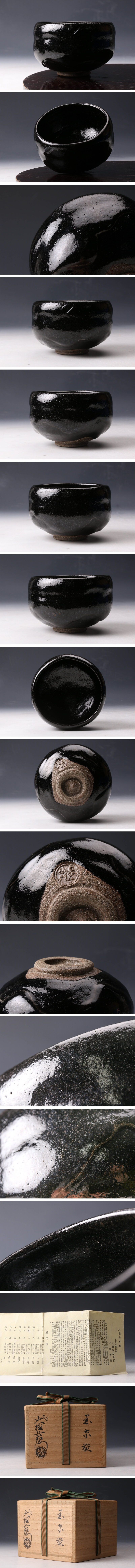 【佳香】九代 大樋長左衛門 黒茶碗 共箱 栞 茶道具 本物保証拍卖