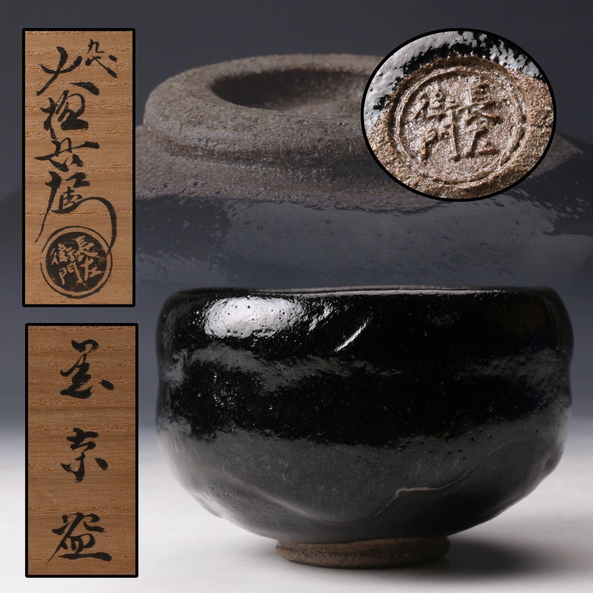【佳香】九代 大樋長左衛門 黒茶碗 共箱 栞 茶道具 本物保証