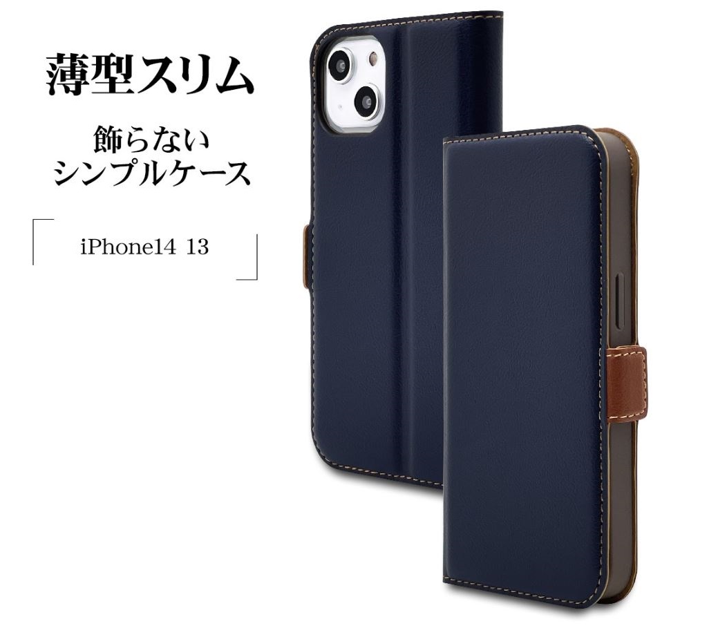 > ◆送料無料◆新品◆ラスタバナナ◆iPhone 14/13(6.1インチディスプレイ)用 手帳型ケース 『SLIM FIT』◆7015IP261BO ネイビー×ブラウン