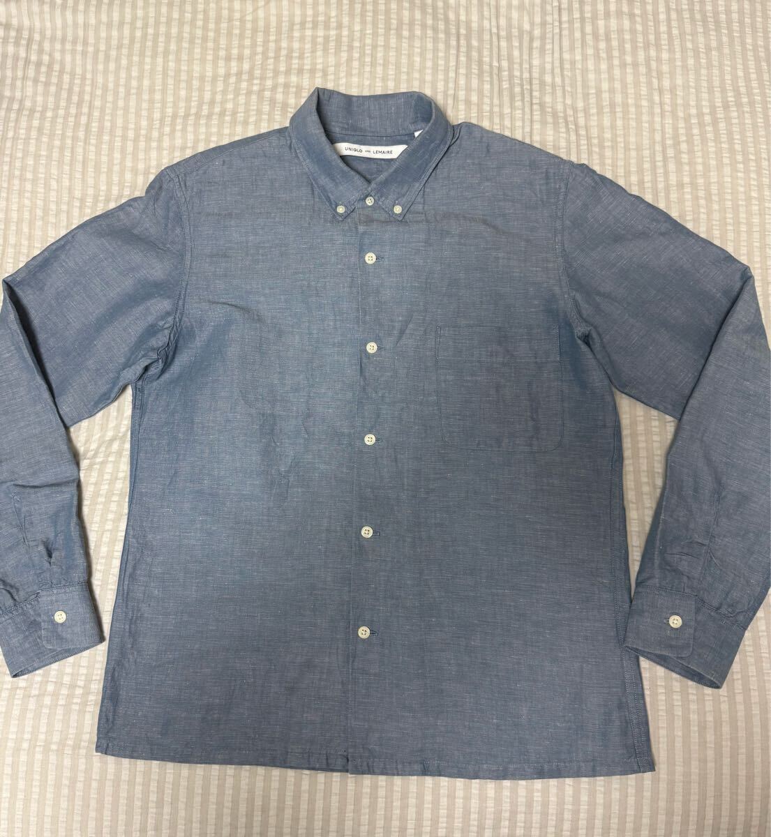 - UNIQLO AND LEMAIRE ユニクロ アンド ルメール 初期コラボ リネンコットンシャンブレー長袖シャツ Mサイズ ブルー 元エルメスデザイナー