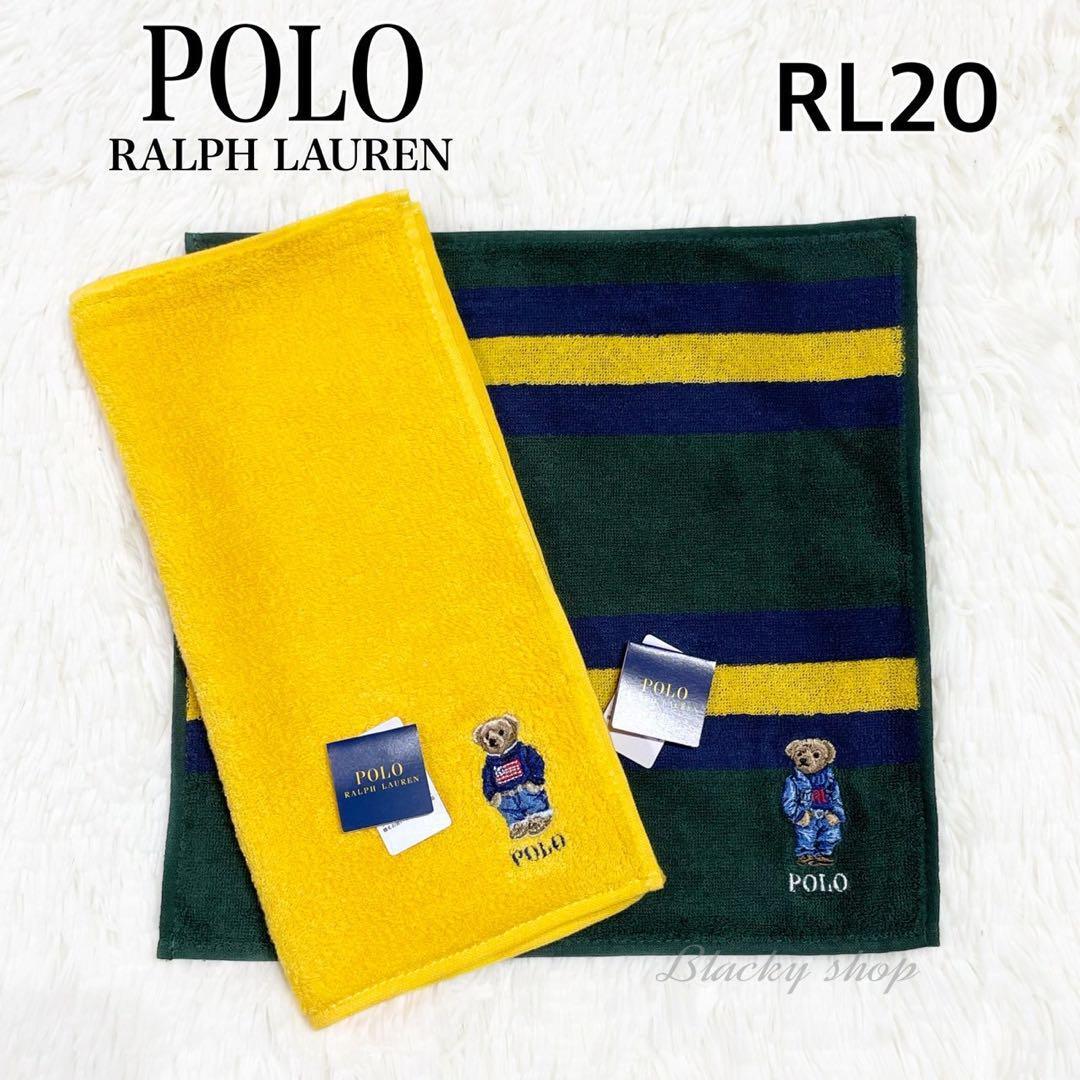- 2枚セット ポロ ラルフローレン ポロベア タオル ハンカチ 新品 無地 ストライプ RL20 綿100% 日本製 POLO RALPH LAUREN