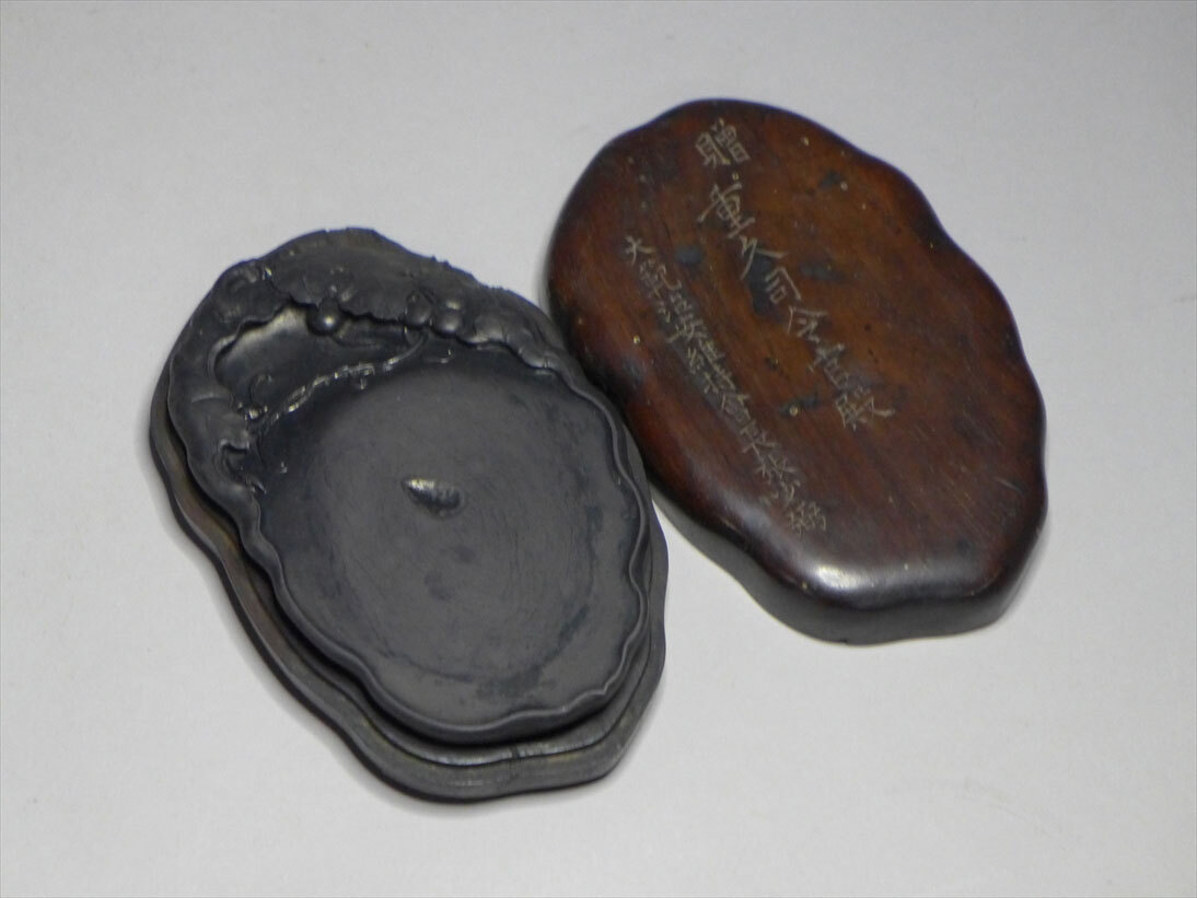古硯 中国古玩『贈重久司令官殿 大範治安維持会長張少弼 栗鼠葡萄刻硯 唐木箱』検/老坑端渓澄泥桃河歙州文房四宝墨書道清朝康煕乾隆