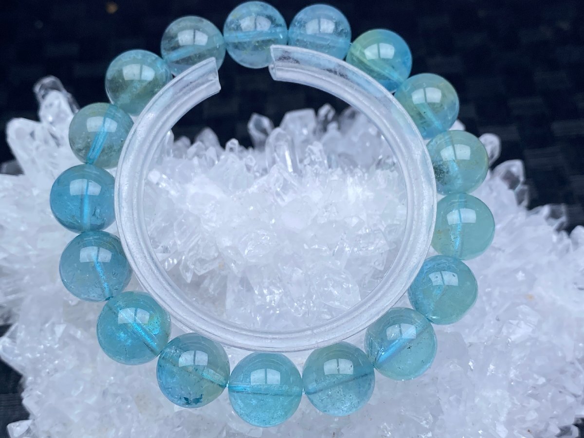- 即決 0621a237 天然水晶【30Aブルーグリーントパーズ】ブレス 12-12.5mm(新品)