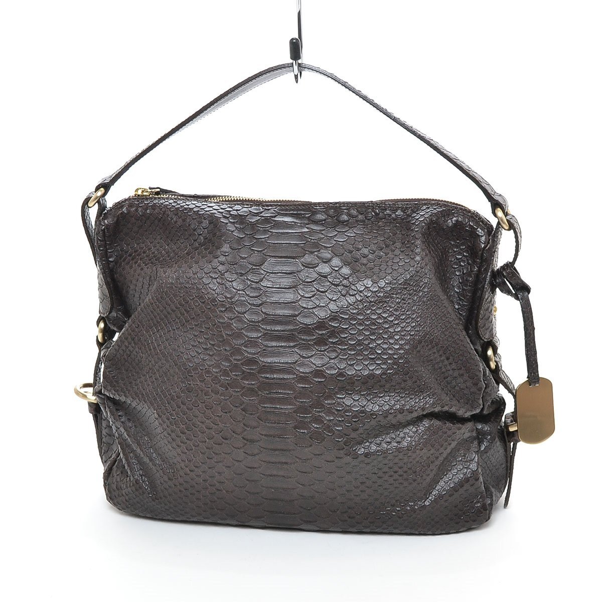 - □359920 FURLA フルラ ショルダーバッグ レザー クロコダイル型押し レディース ダークブラウン