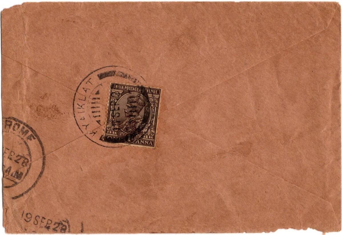 - インド切手ビルマ使用例 チャイクラット局 1928 ジョージ5世1アンナ貼 カバー