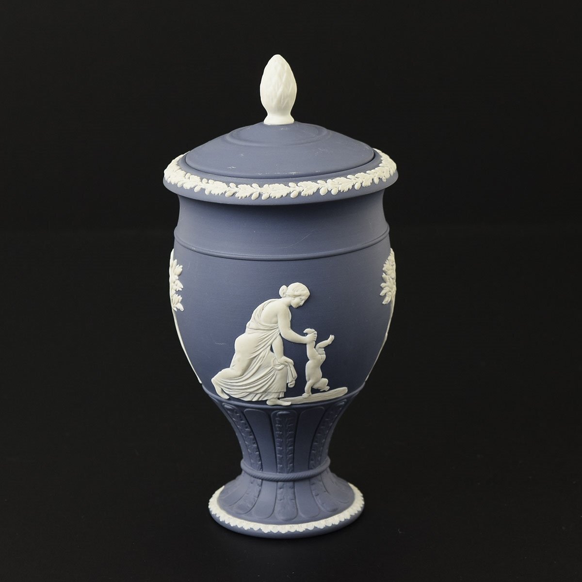 - ◎528219 美品 WEDGWOOD ウェッジウッド ジャスパー ポートランドブルー 蓋付 飾り壷 花瓶