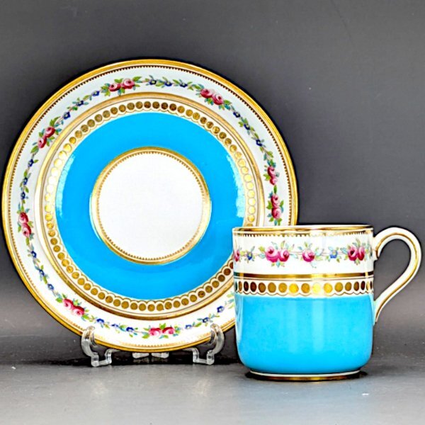 > 【可憐】 Cauldon コールドン ターコイズブルー 薔薇と小花ガーランド 可愛らしいキャビネットカップ 英国アンティーク