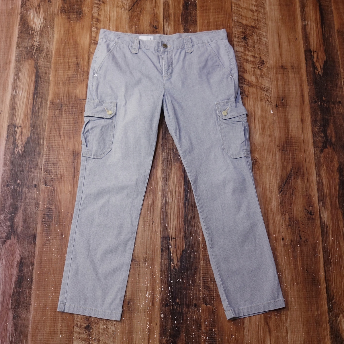- ギャップ Gap 1969 ストライプカーゴパンツ レディース カジュアル ワークテイスト ストレート 8 Lサイズ ライトブルー QJ44