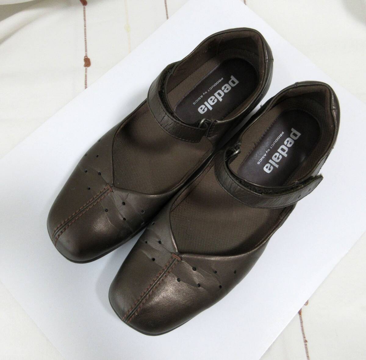 - pedala asics walking ペダラ アシックス 23.5cmEEE 3E フラットシューズ ブロンズブラウン 茶系 レザー 本革 ストラップサンダル パンプス