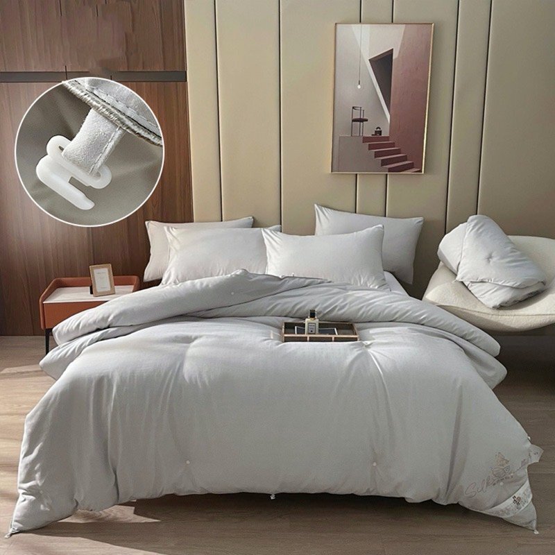 > シルク掛け布団 掛ふとん 天然繊維絹 収納袋付き 軽く暖かい ふとん 吸湿通気 防寒 抗菌性 防ダニ グレー 220x240cm(重量約3KG)