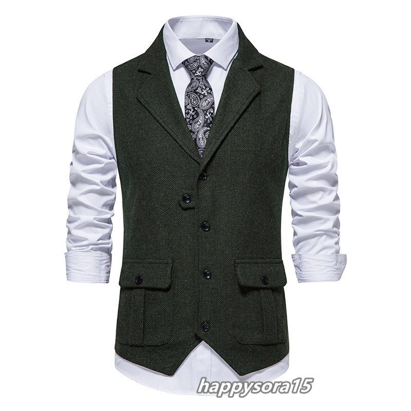 > ジレベスト メンズ ビジネスベスト スーツベスト ベスト フォーマルベスト 紳士服 カジュアル おしゃれ トップス グリーン 2XL