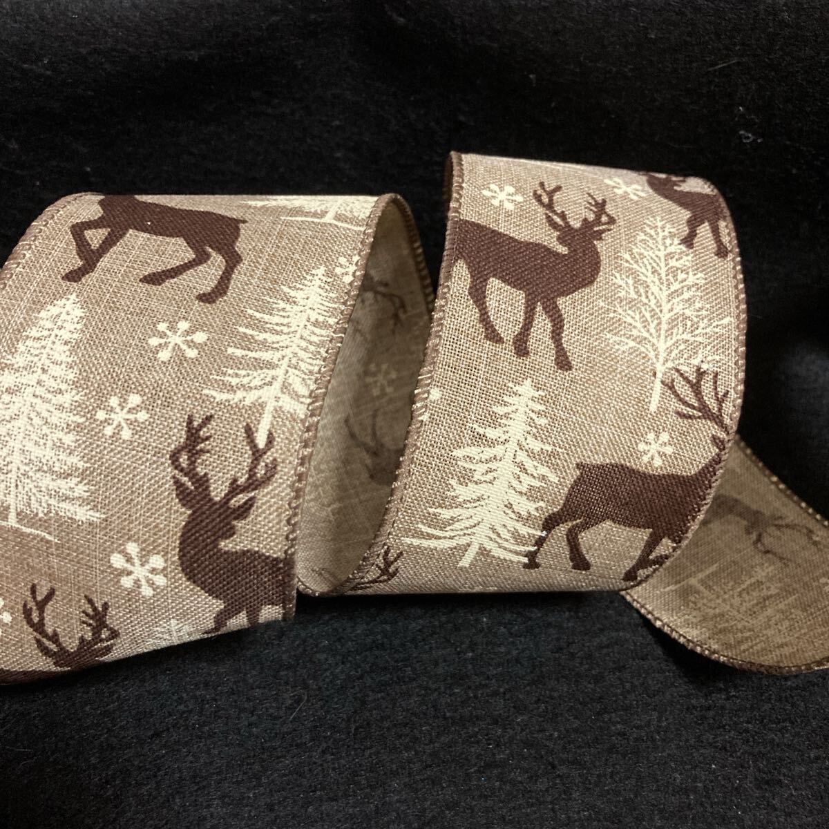 - リボン切り売り 1.5m トナカイ もみの木 ナチュラルリボン 約6.3cm幅 クリスマスリボン