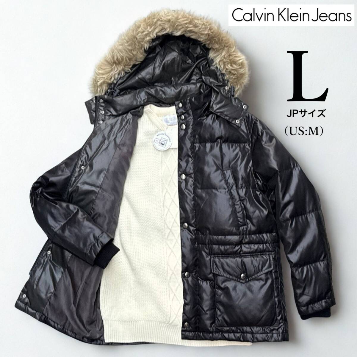 > ◆モデル出品◆used Lサイズ Calvin Klein Jeans ラムファーフード付ダウンジャケット黒 カルバンクラインジーンズ+白ニット付!(新品)