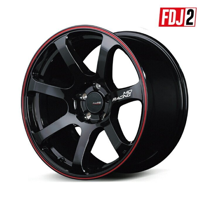 - MID Racing R07 アルミホイール4本セット 18x8.0J 5H PCD100 +45 (アールゼロナナ BKR ブラック/リムレッドライン)