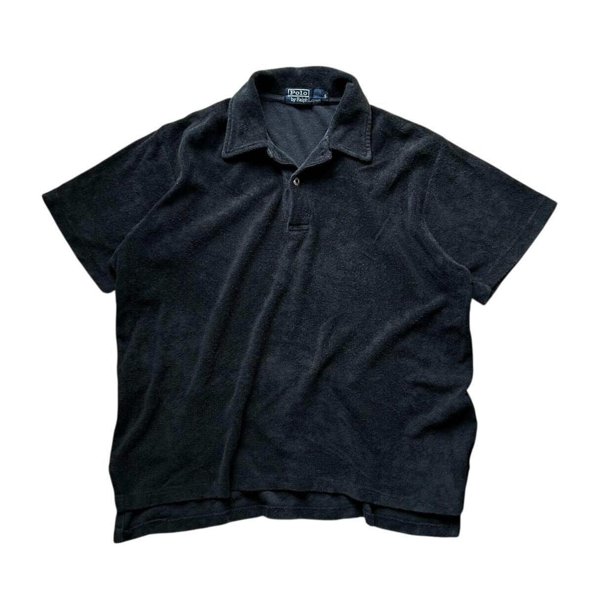 > 90’s〜 Polo Ralph Lauren ポロ ラルフローレン ポロシャツ S ブラック 黒 パイル 生地 半袖シャツ メタルボタン 1990年代