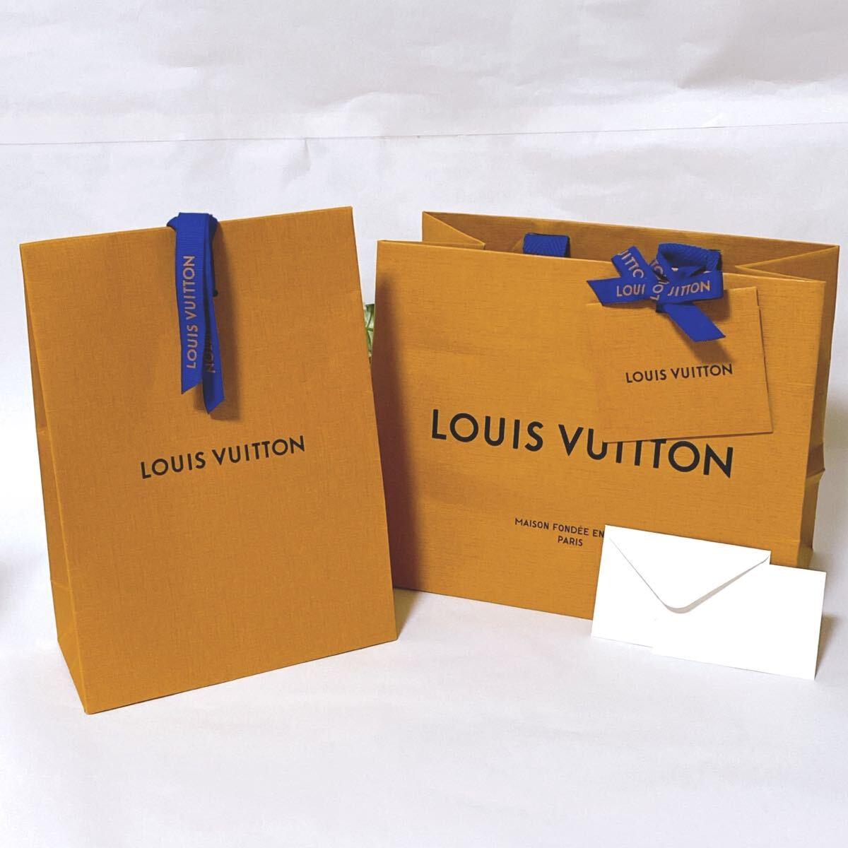 - ルイヴィトン「LOUIS VUITTON」ショッパー2枚とメッセージカード (6056) 正規品 付属品 ショップ袋 ブランド紙袋 小物箱サイズ 折らずに送