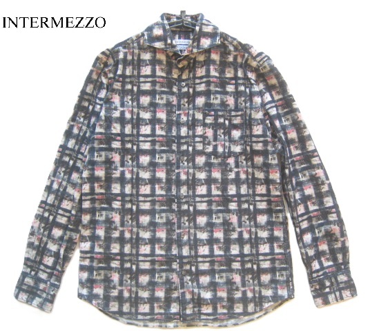> 美品!!インターメッツォ INTERMEZZO*TAIANA伊製生地 総柄プリント 細畝コーデュロイホリゾンタルカラーシャツ L ダーバン D'URBAN
