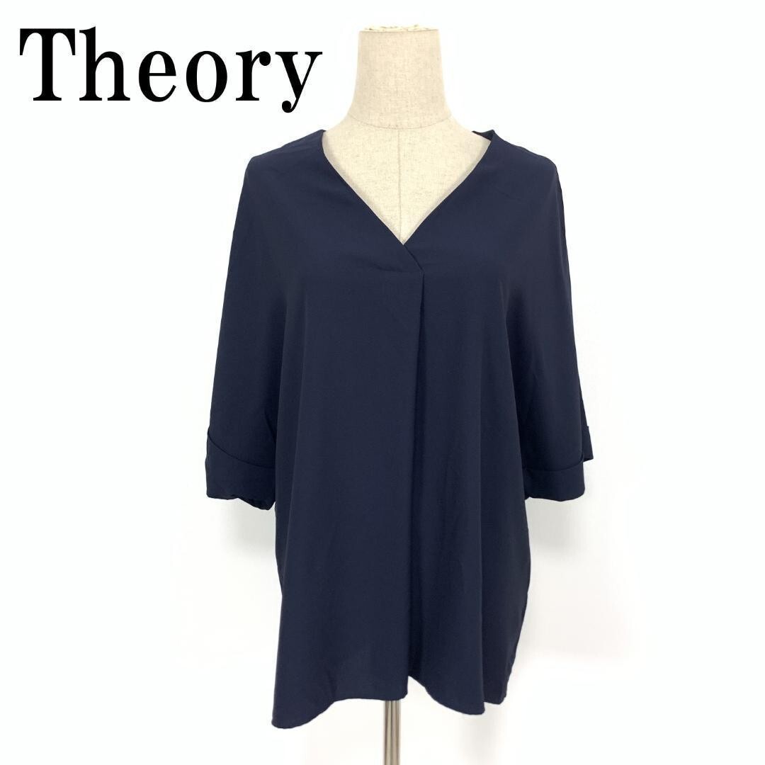 - LA7572 Theory セオリー Vネック ドロップショルダー 半袖ブラウス ポリエステル ネイビー S