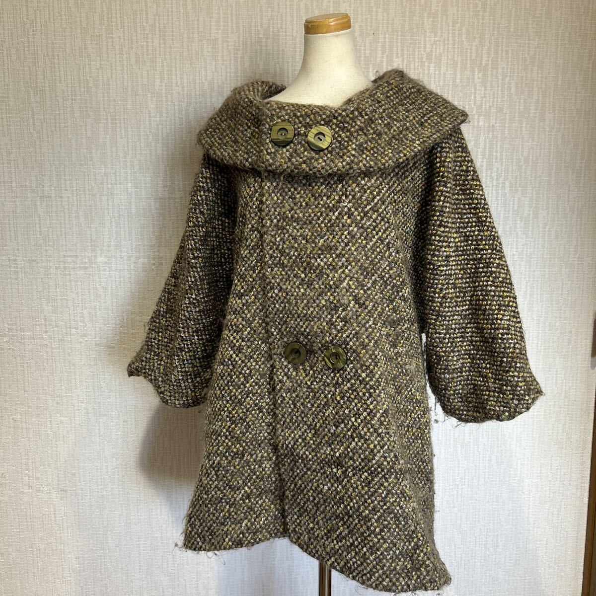 - 道中着●道行コート 和装コート ツイードウール ニット●茶色 混合 ミックスカラー●身丈82cm●着物*レトロ*アンティーク●リメイク素材
