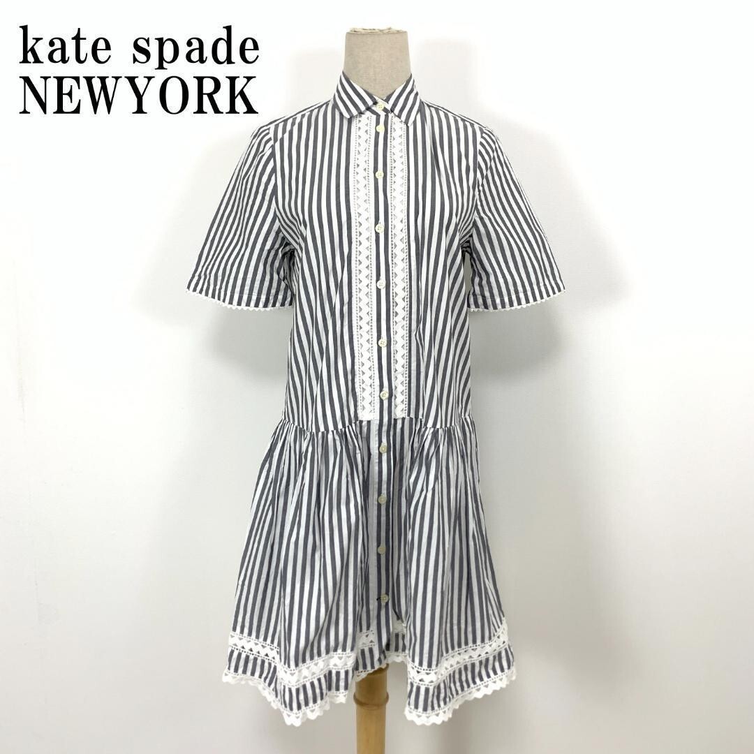 - LA7605 ケイトスペードニューヨーク kate spade NEWYORK コットン100% ストライプ フレア レース コットン 半袖ワンピース グレー XS