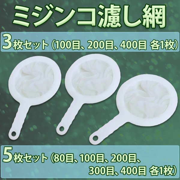 - 【新品】分離網 水槽 メダカ ミジンコ ブラインシュリンプ ゾウリムシ 飼育 ネット フィルター 濾し 100目 200目 400目 3種セット