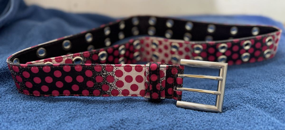 - 赤 黒ピンクの スタッズベルト全長110センチ、幅4㌢革製