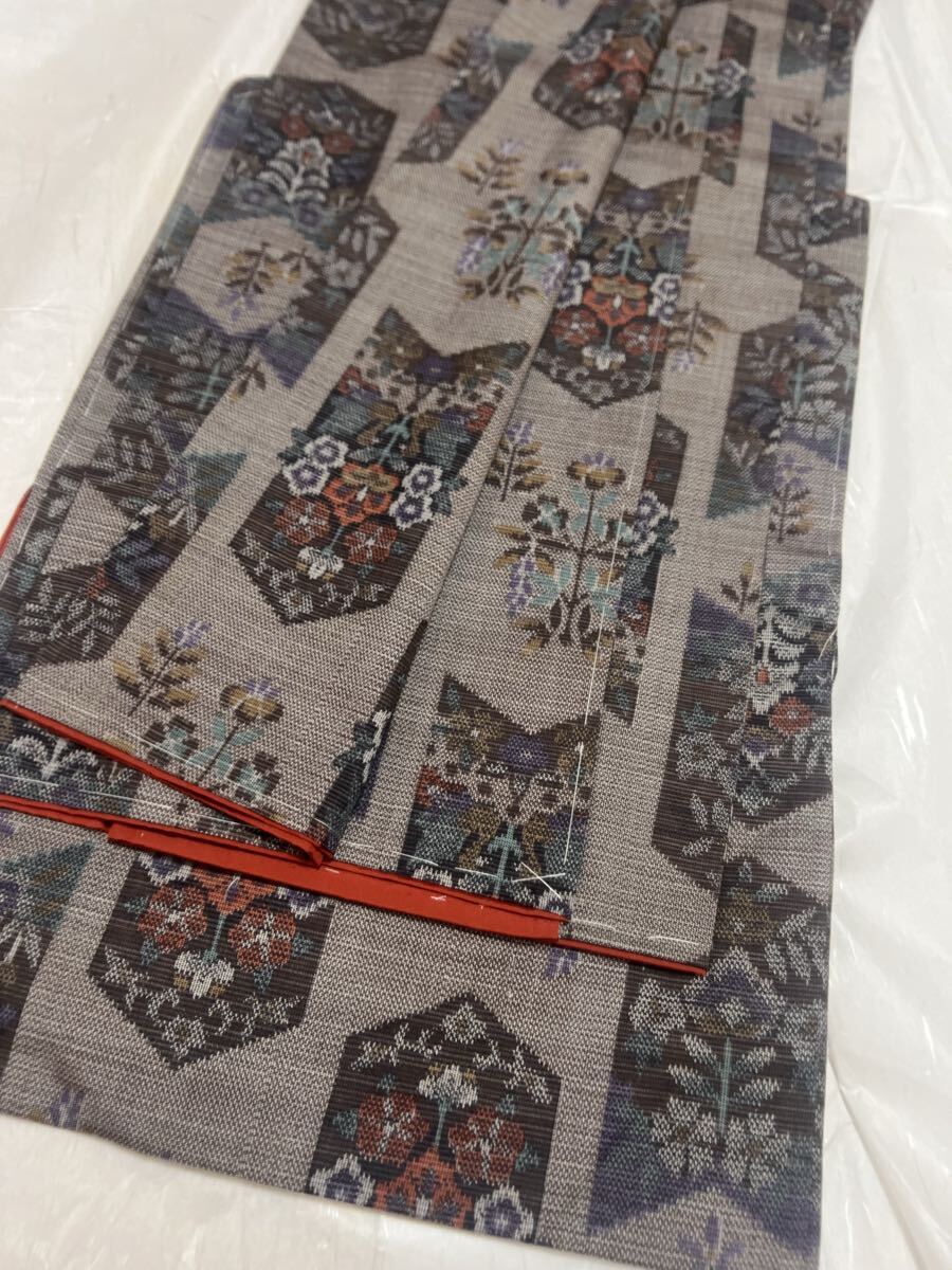 - 大島紬 着物 正絹 しつけ糸付き 黒茶系 華 小紋 伝統織物 きもの 和装