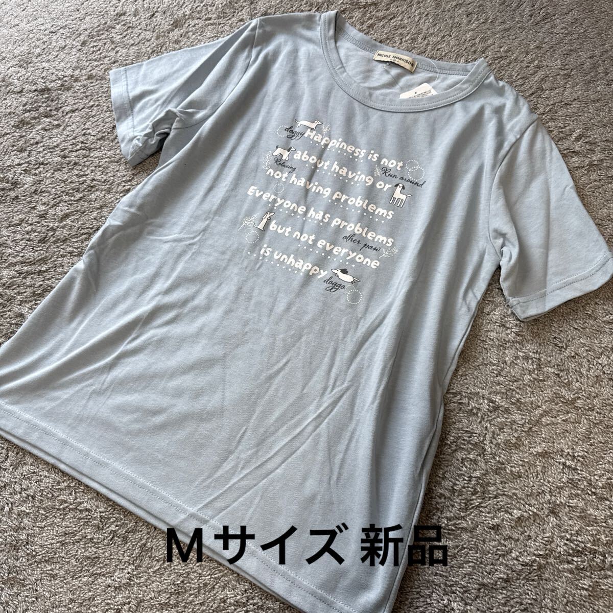 > NICOLE MORRISON 犬ロゴ半袖TシャツサックスM★ゆうパケット配送可能★新品32