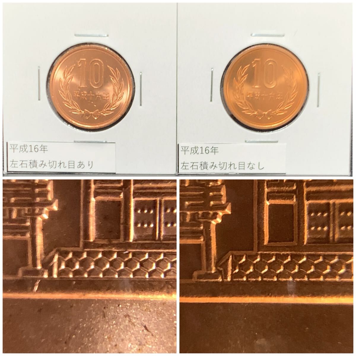 - 平成16年 10円青銅貨 左石積み切れ目有り、無し 手変わり比較 ミント出し ロール出し 未使用
