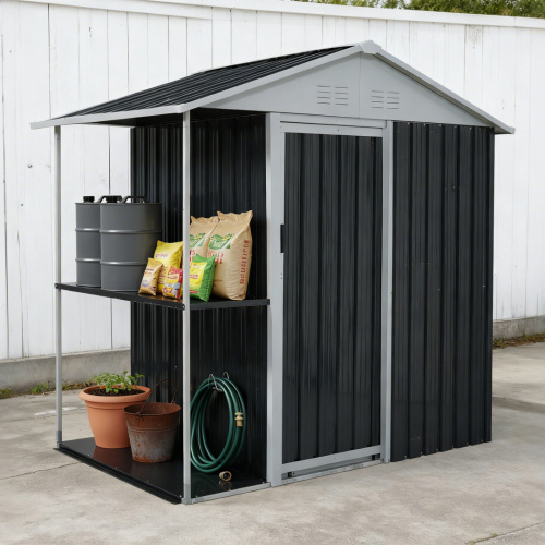> 【収納ラック付き】物置 屋外 スチール 倉庫 戸外収納庫 W193*D130*H189cm 物置き おしゃれ 大型 収納庫 屋外物置 庭 新作【ブラッ KU209