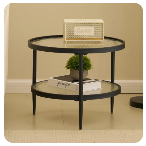 - ガラステーブル センターテーブル 単品 ガラス天板 二段式 収納付き コンパクト リビング KU372
