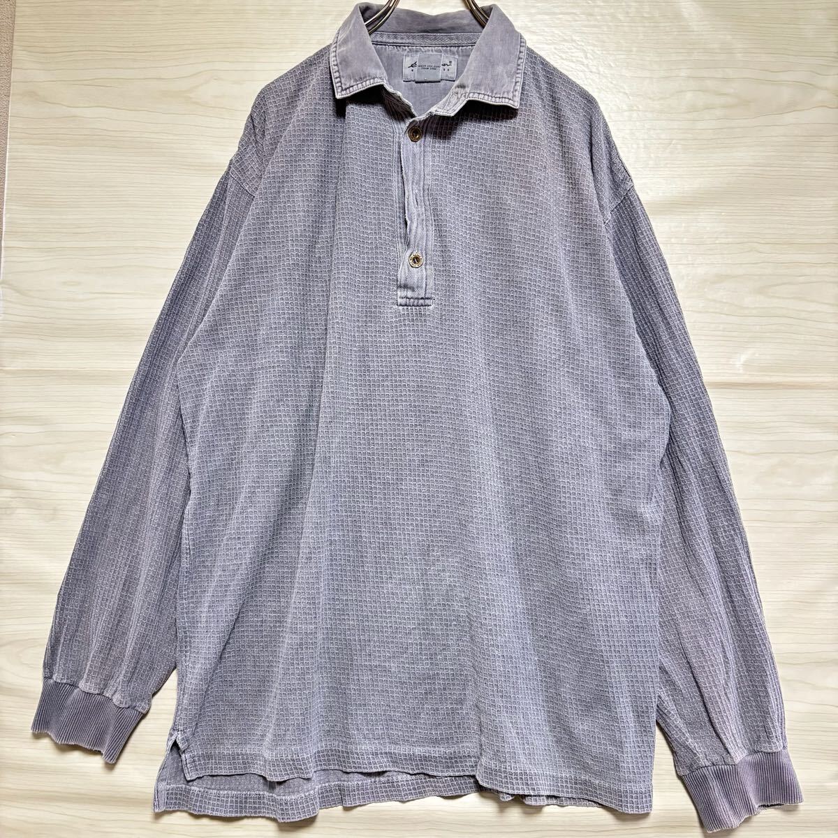 - Eddie Bauer エディーバウアー 長袖ポロシャツ 長袖シャツ 鹿の子 ワッフル生地 サイズL グレー コットン メンズ トップス (34)