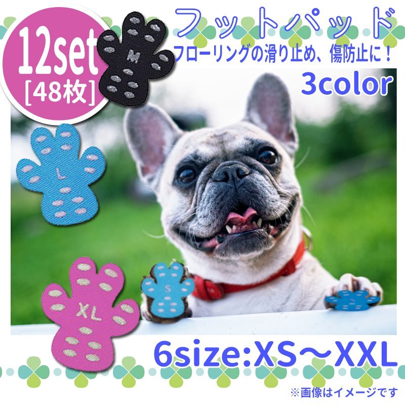 > 送料無料 フットパッド 犬用 12セット48枚入 肉球保護 滑り止め 犬 ペット カバー 肉球ケア すべり止め 保護 靴下 フットカバー 足カバー