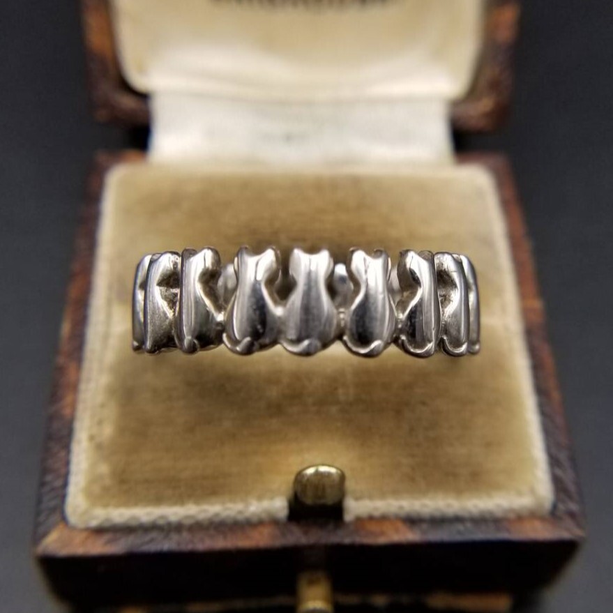 - 猫の背中 シルエット エタニティ 925 シルバー ヴィンテージ バンド リング 銀 指輪 幅広 モチーフジュエリー Y24-O
