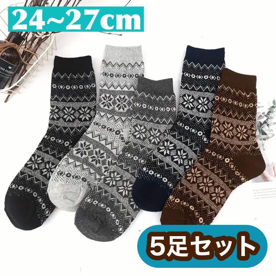 - 新品 メンズ ソックス 靴下 雪の結晶柄 5足セットソックス 24〜27cm