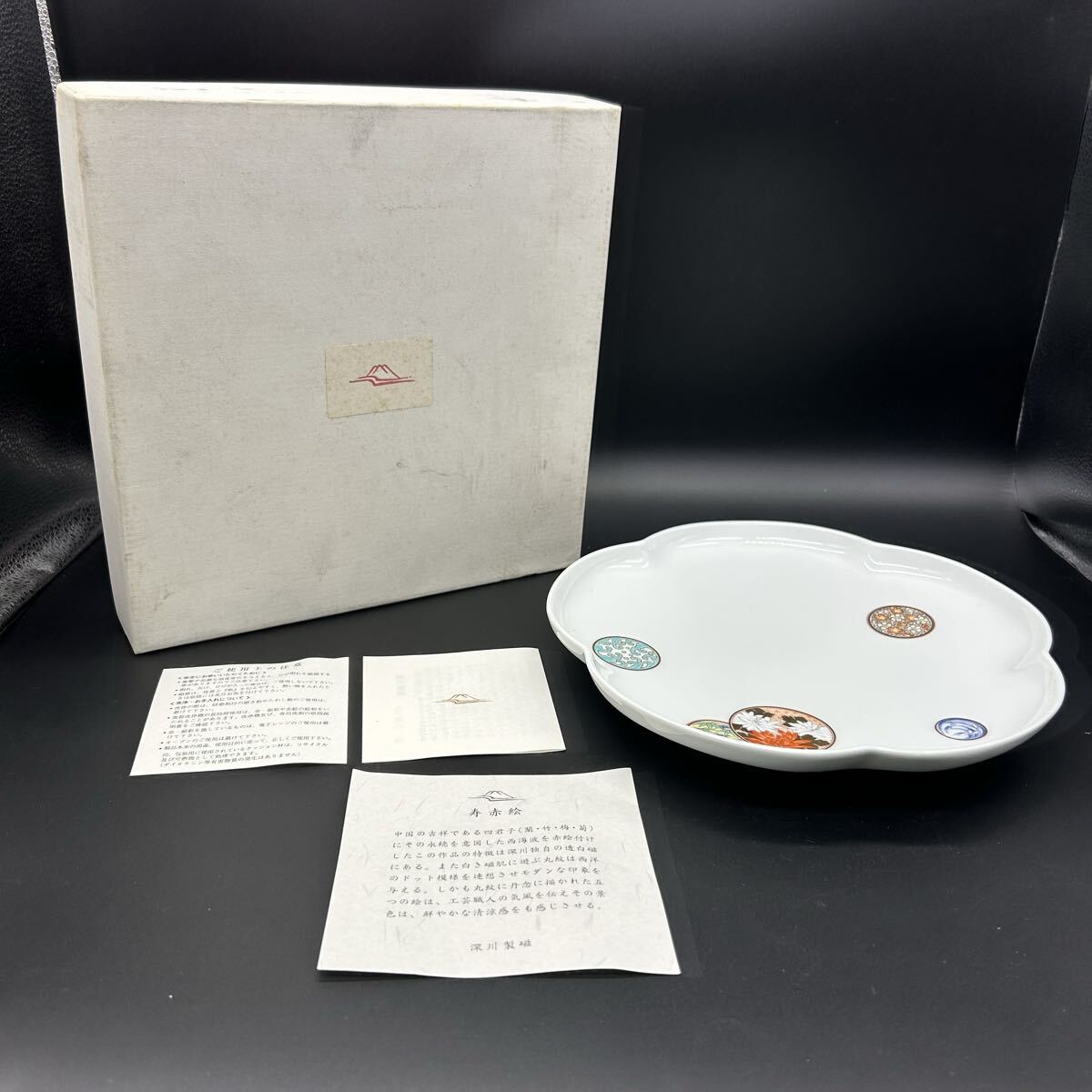- 深川製磁 寿赤絵 大皿 プレート 皿 梅型八寸皿 陶器 和食器 オ14