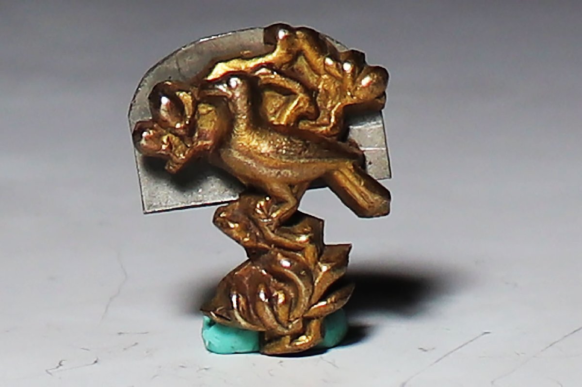 - 【桃】提げ物:金工銅地鍍金花鳥煙草入れ飾り金具