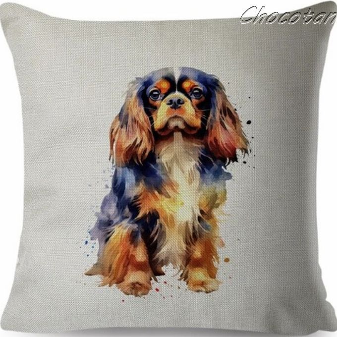 - 【送料無料】キャバリア パピー 水彩画 28 クッションカバー【新品】