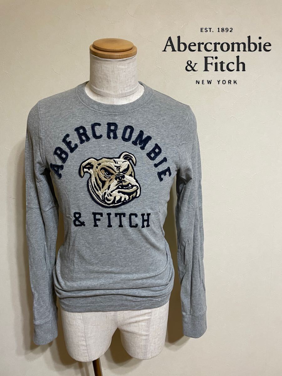 - Abercrombie & Fitch A&F アバクロンビー&フィッチ ロンT 刺繍 ブルドッグ クルーネック コットン Tシャツ サイズS 長袖 グレー 175/92Y